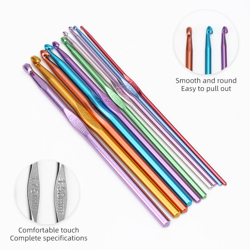 10-Piece Premium Multi-Color Aluminum Crochet Hook Set