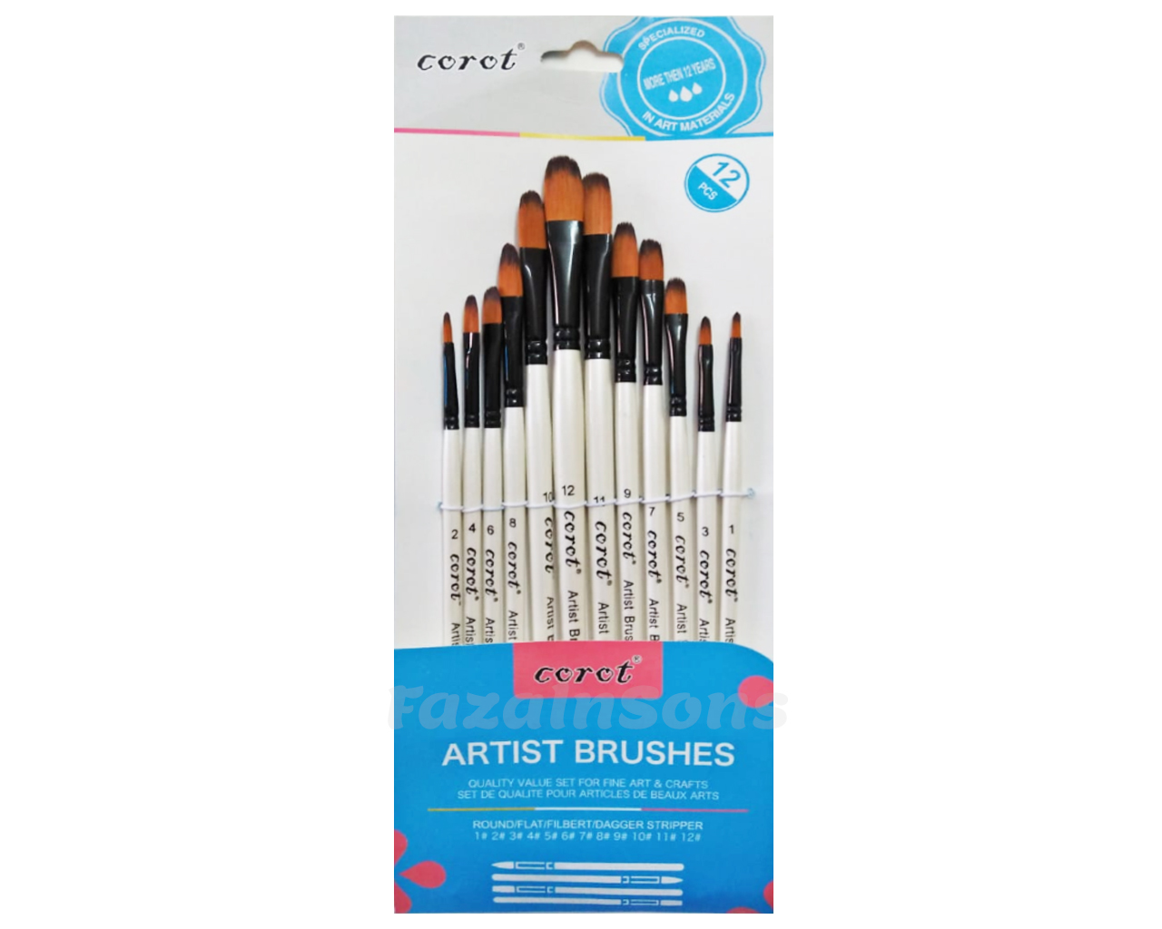 Includes 12 filbert brushes in multiple sizes