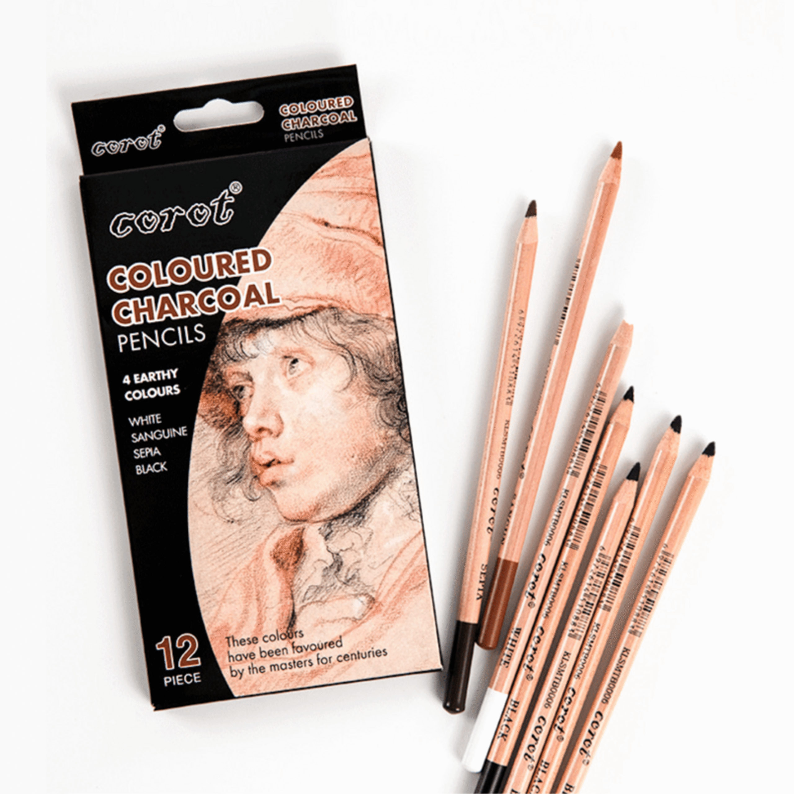 Corot Earthy Tones Coloured Charcoal Pencil Set – 12 Piece