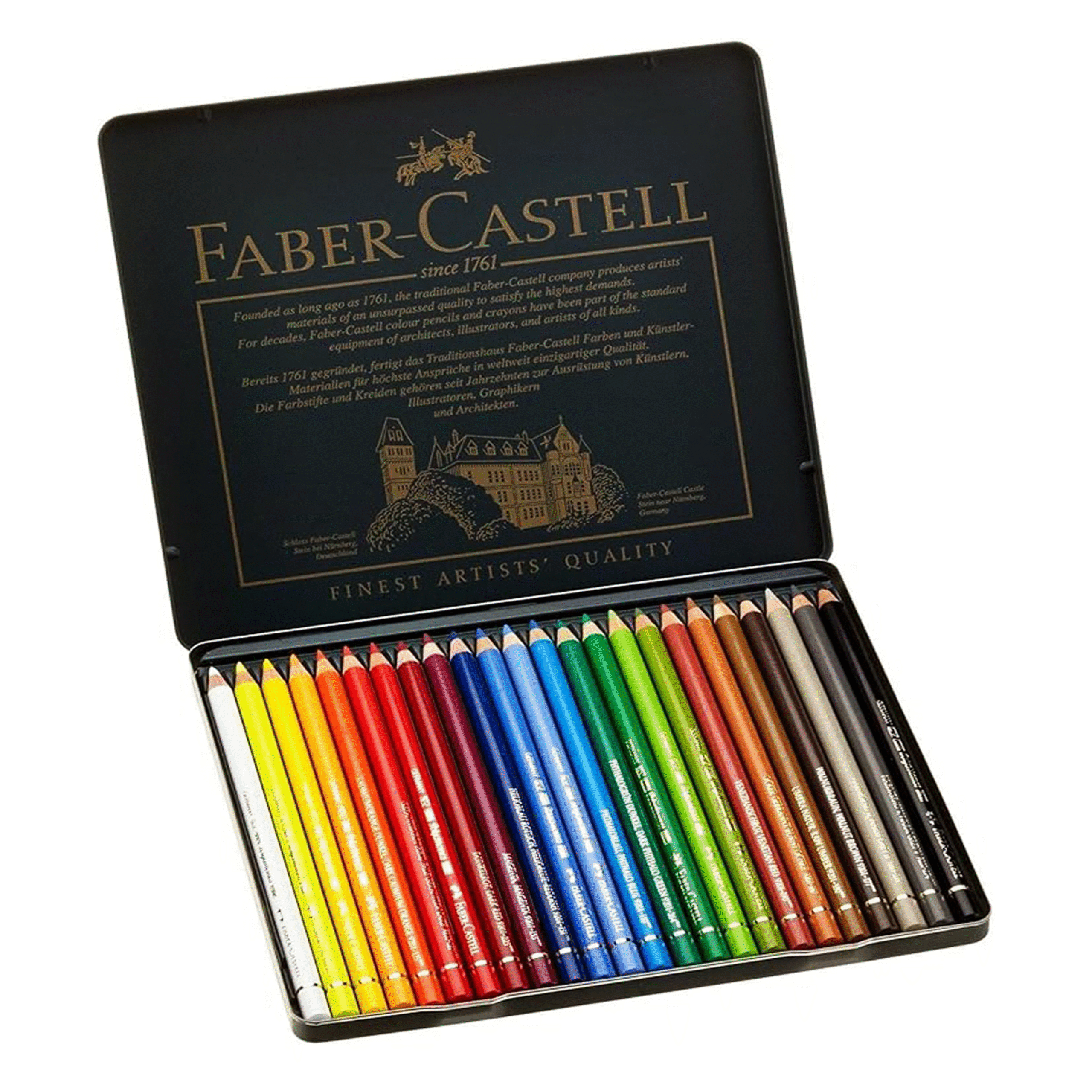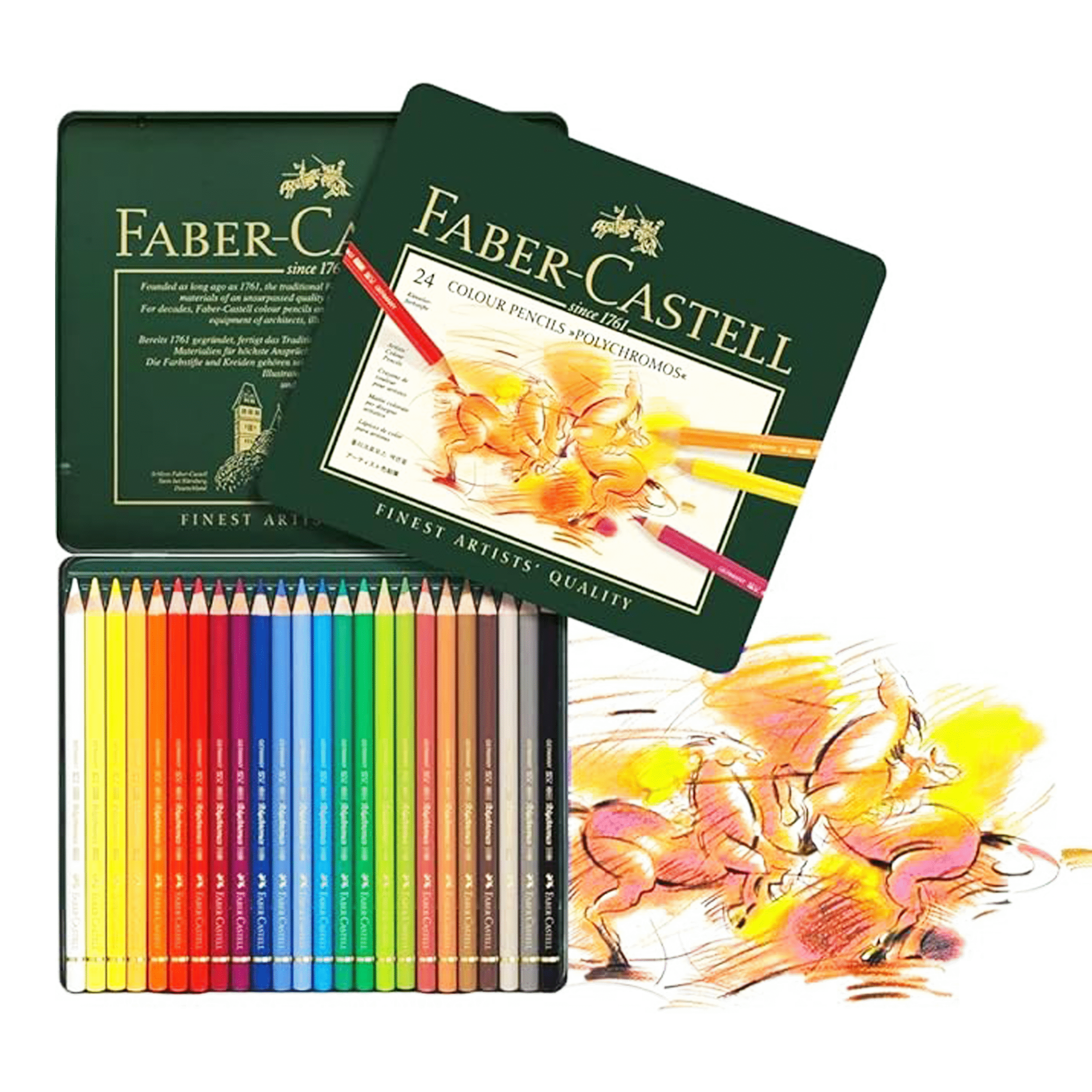 Faber-Castell Polychromos Artists’ Color Pencils – Set of 24 Assorted Colors in Metal Tin