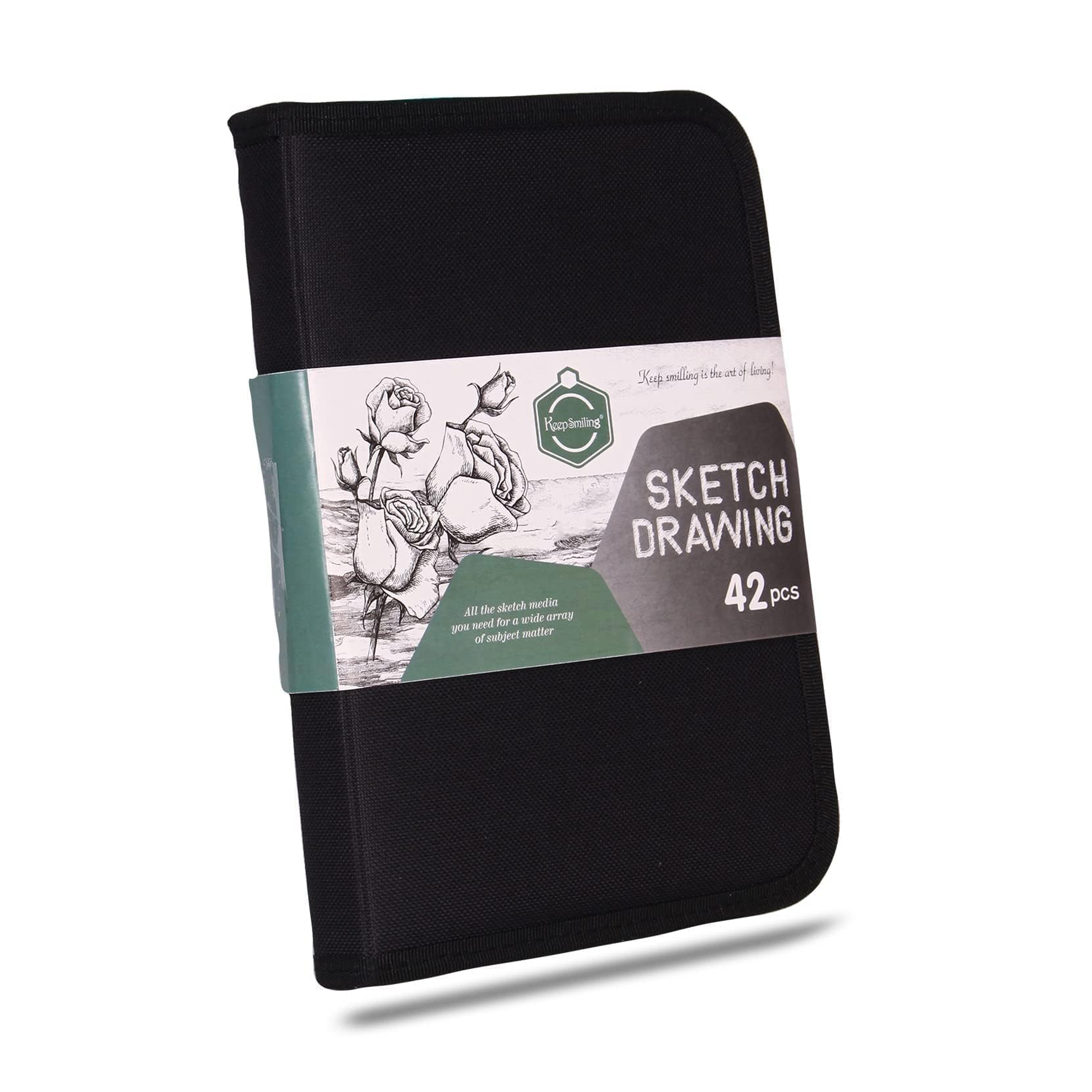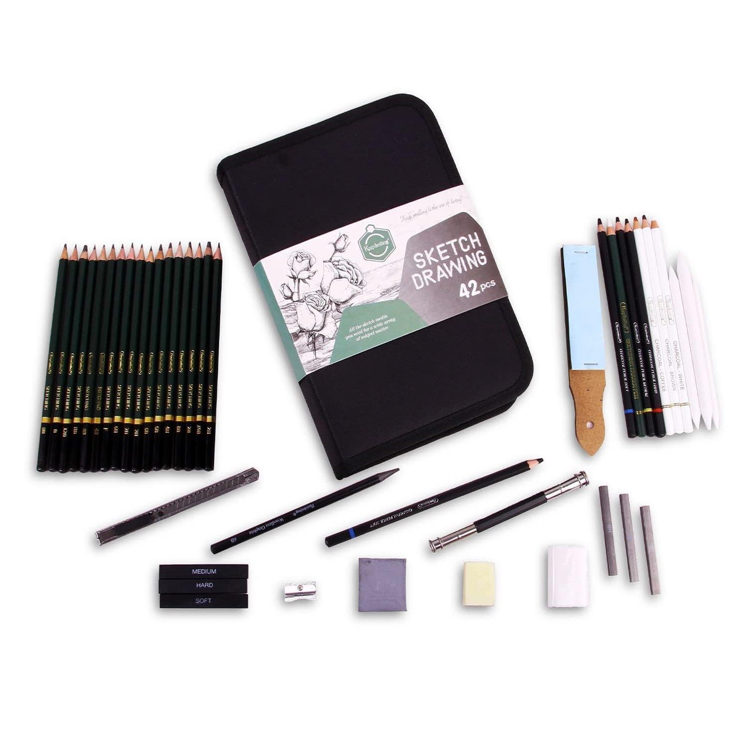 Keep Smiling Professional 42-Piece Sketching & Drawing Set – Comprehensive Graphite & Charcoal Art Kit with Zippered Carry Case