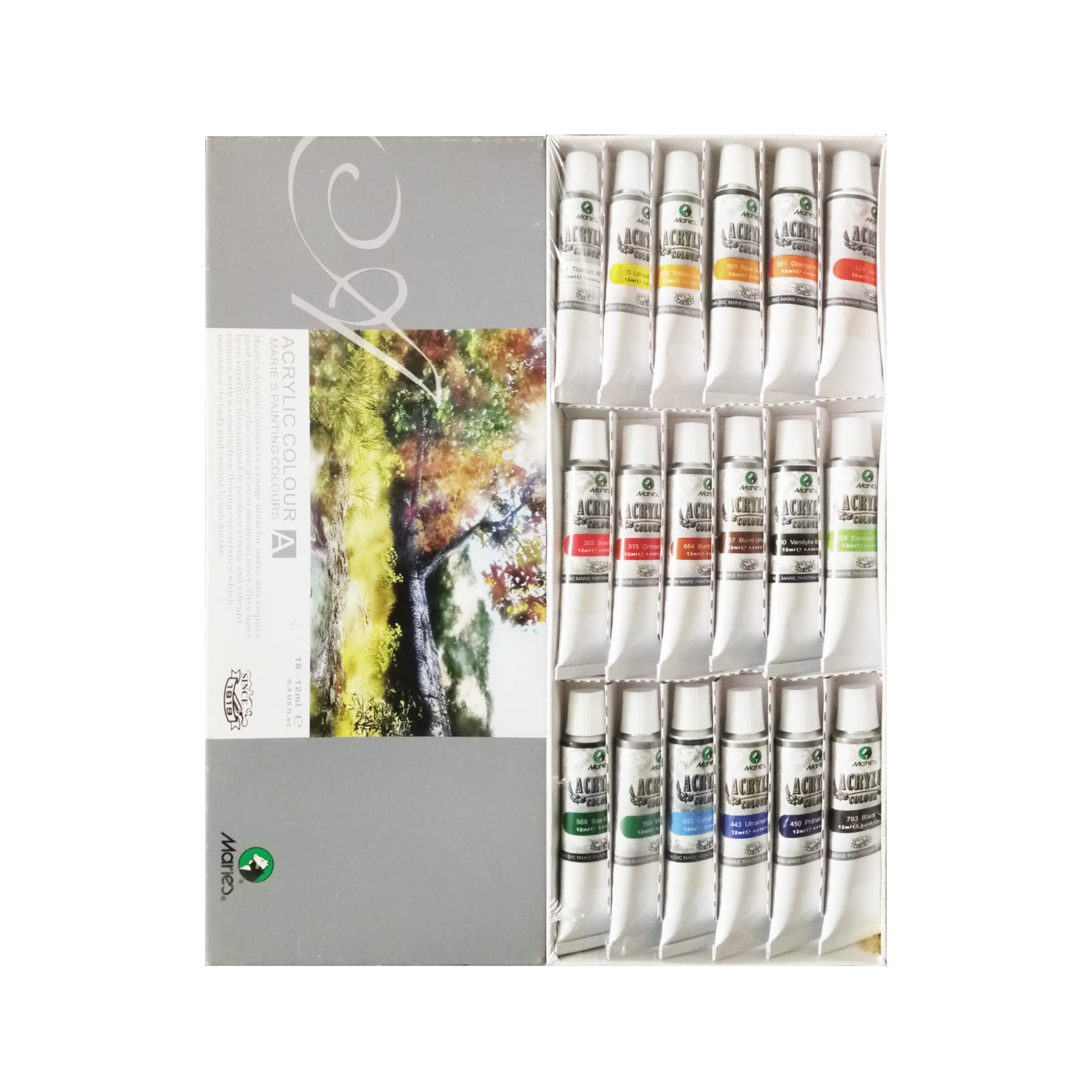 Marie’s Acrylic Paint 18 Color Tube Set 12ml Each