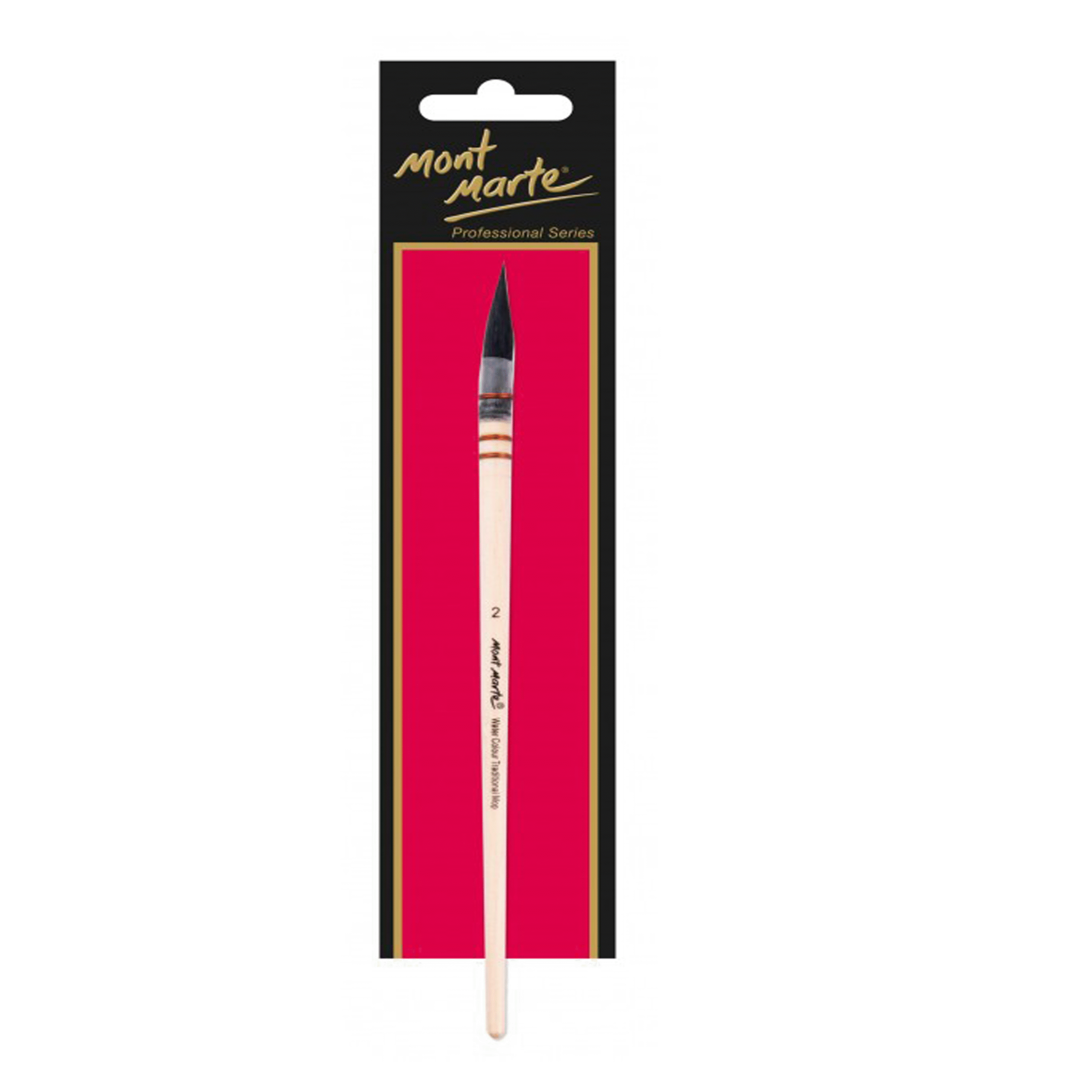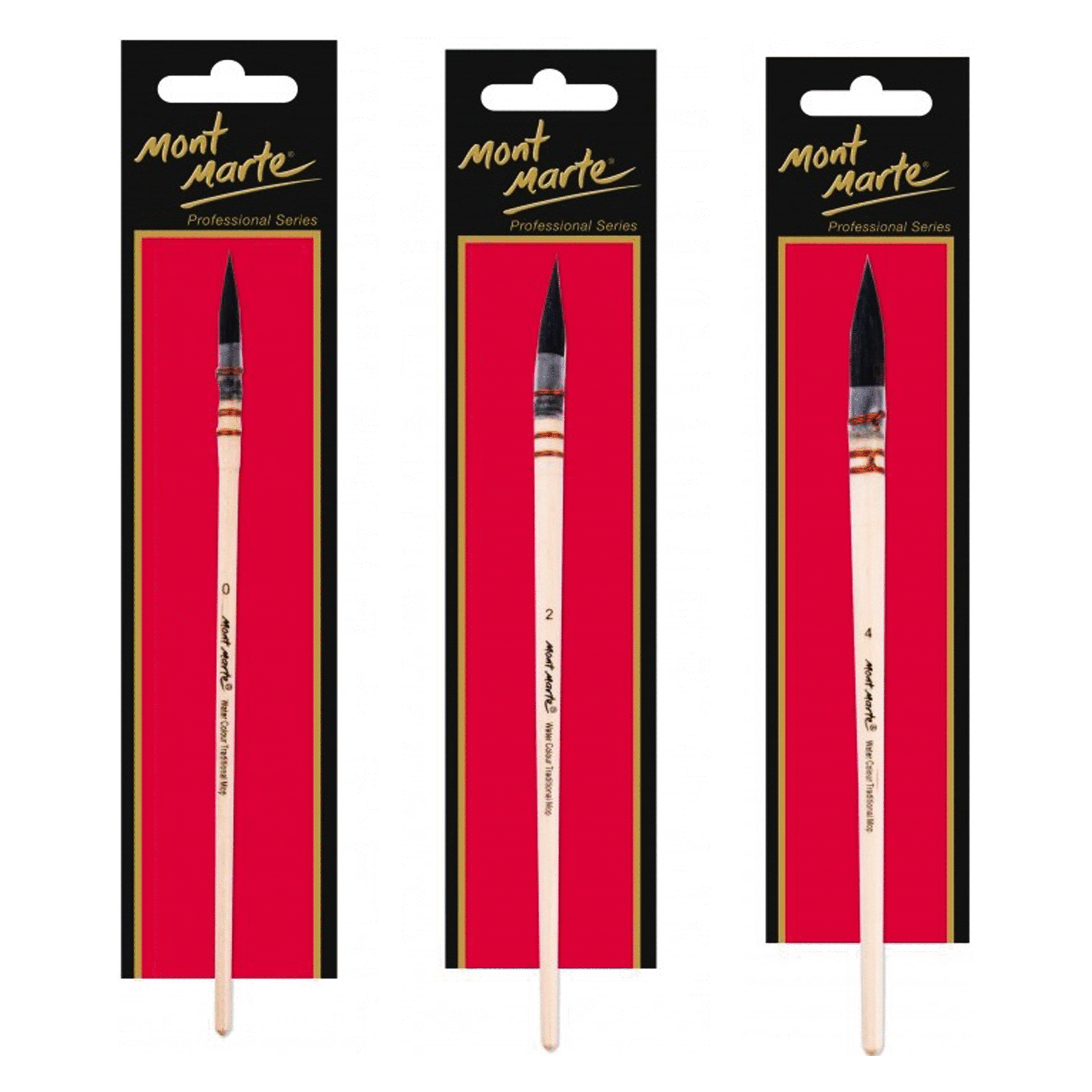 Mont Marte Professional Series Watercolor Traditional Mop Brush – Natural Hair & Wood Handle (Sizes 0, 2, 4)