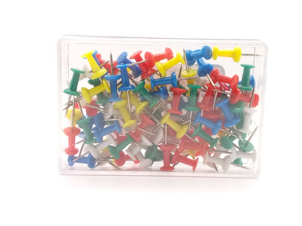 Organize your notes, documents, and displays with the PMP Thumb Pins / Push Pins in a convenient 65-gram box. These high-quality metal pins come with vibrant multi-color plastic heads, making them easy to spot and perfect for classrooms, offices, notice boards, cork boards, and home use.