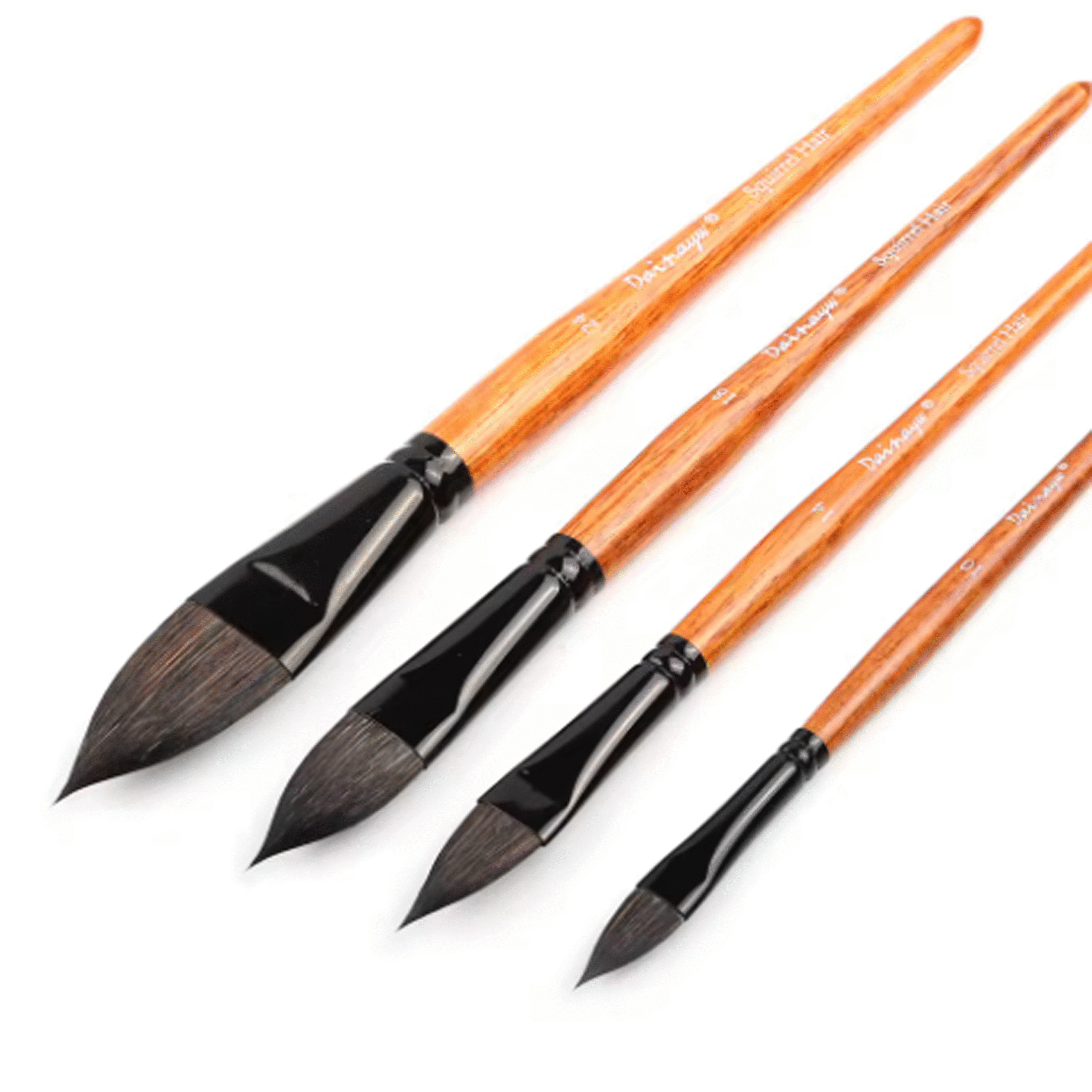 Natural Squirrel Hair: Offers exceptional softness and the highest paint-holding capacity for long, uninterrupted strokes.