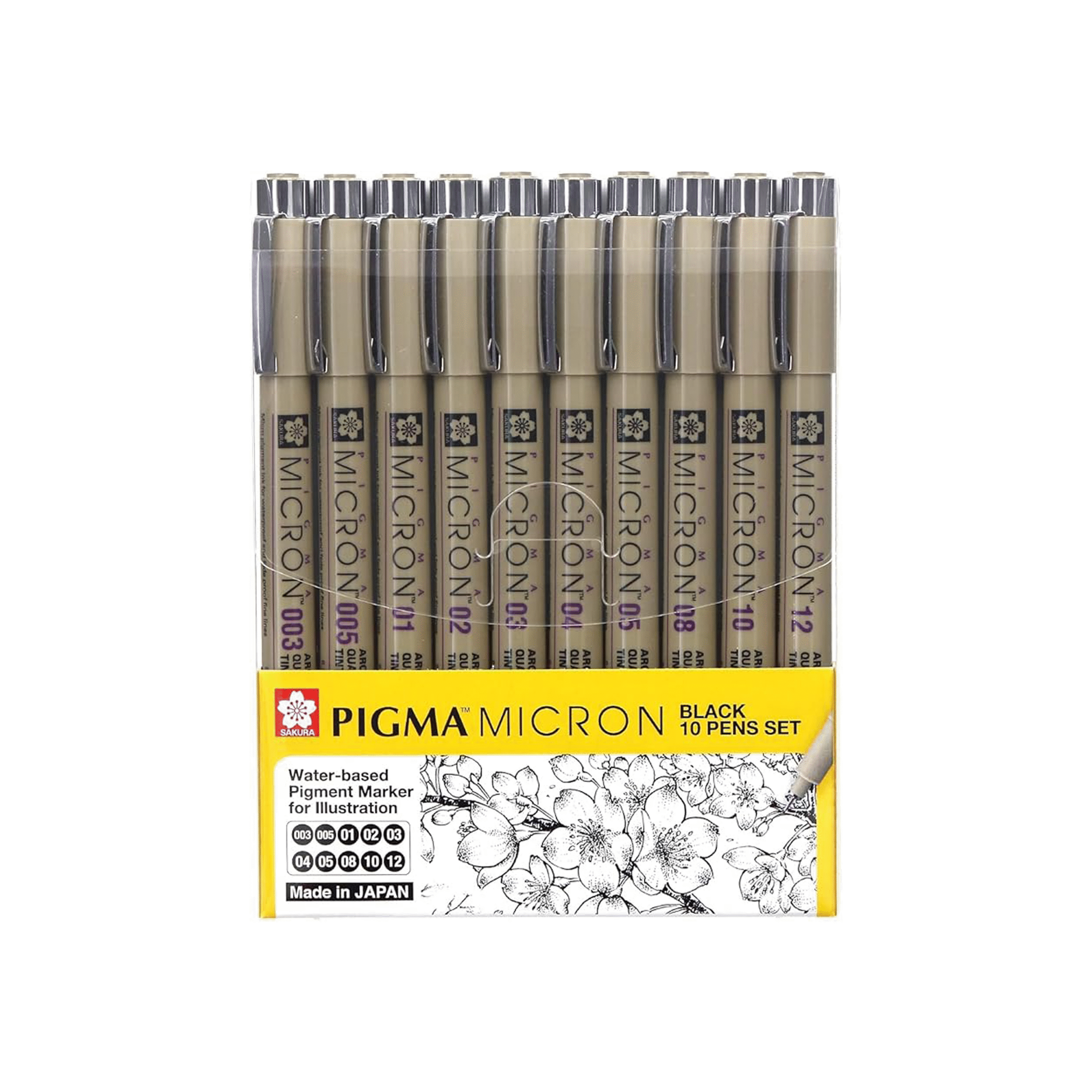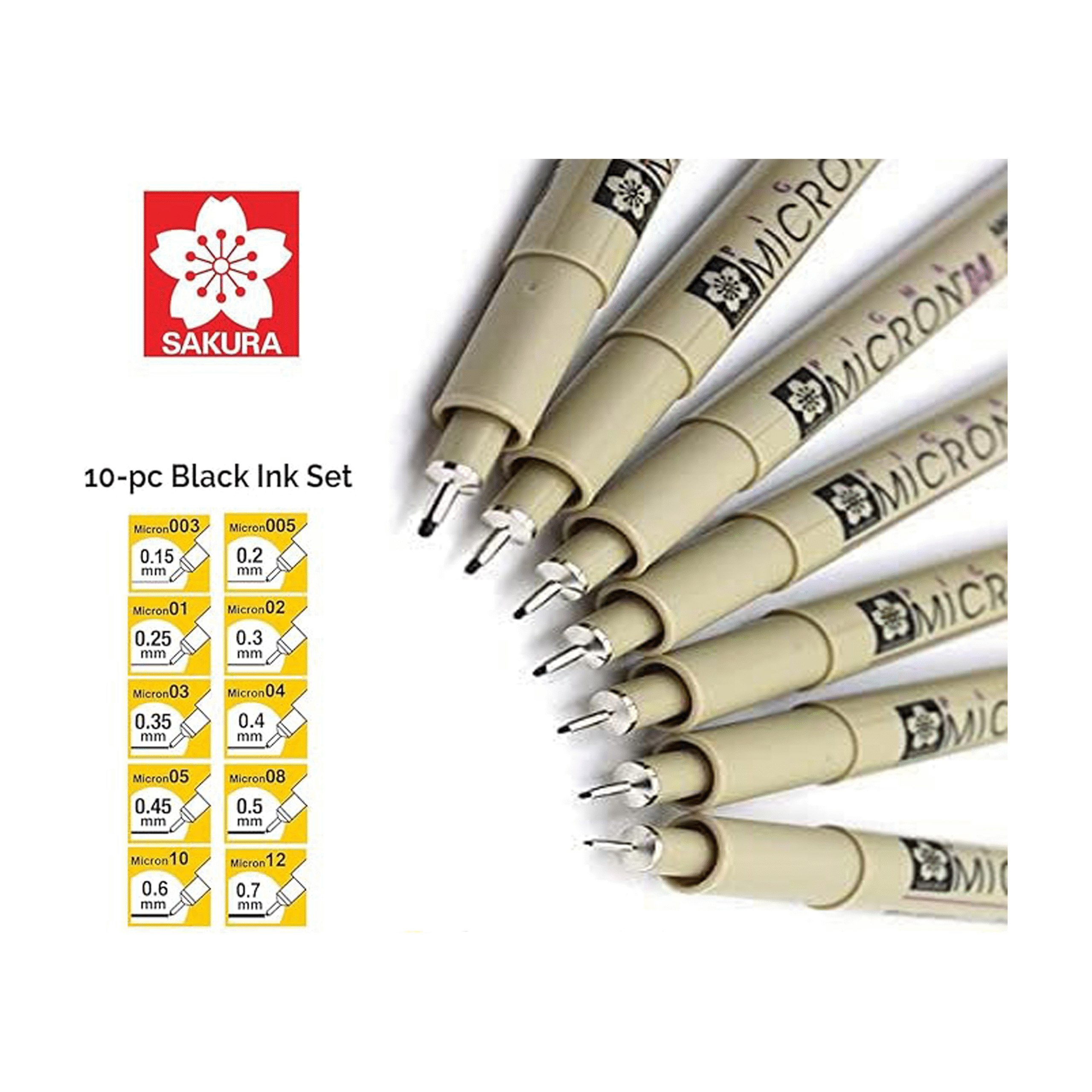 Sakura Pigma Micron Fineliner Pointers – Set of 10 Black Professional Drawing Pens